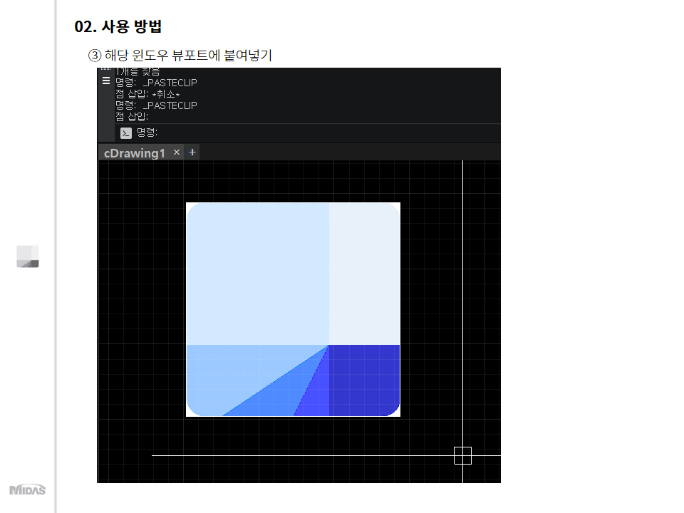 2) 해당 윈도우 뷰포트에 붙여넣기